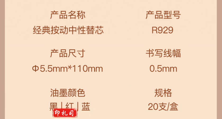 齐心(COMIX)R929 经典按动中性笔芯0.5mm 20支装 红色