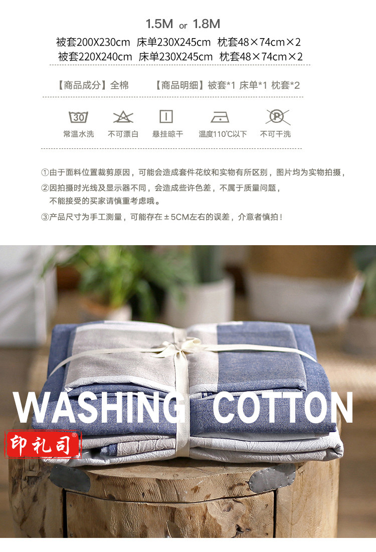 定制 水洗棉四件套纯棉被套200*230cm床单枕套 1.5米/1.8米床(颜色随机)