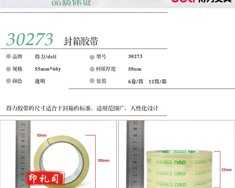得力 30273 封箱胶带 55mmx60y (单位:筒)