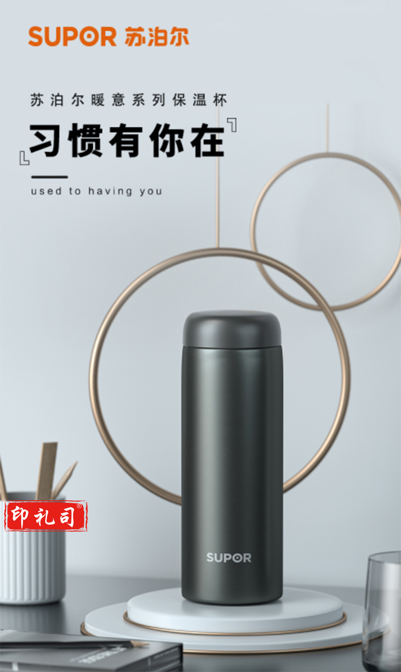 苏泊尔KC38FP10 暖意系列保温杯380ml 典雅黑/玫瑰金