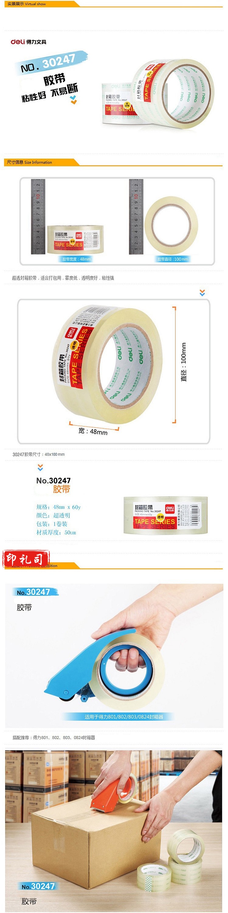 得力 30247 超市封箱胶带 48mmx60y (单位:卷)