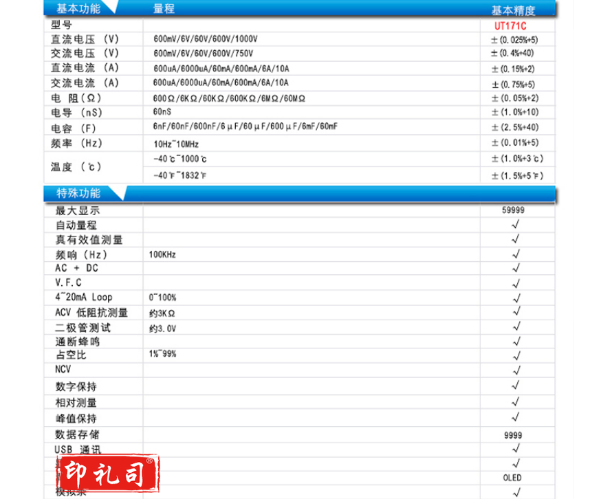 优利德 UT171C 工业级高精度数字万用表 数显万能表