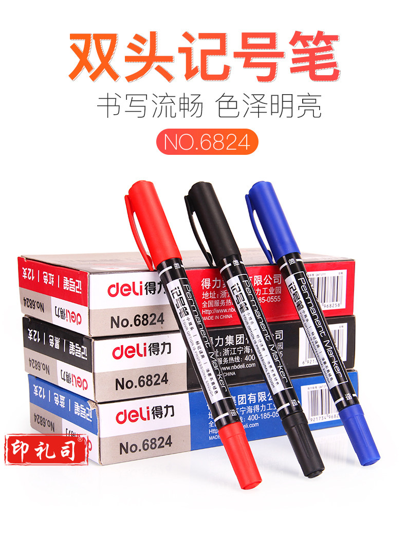 得力(deli ) 6824 记号笔勾线笔双头油性笔 黑色