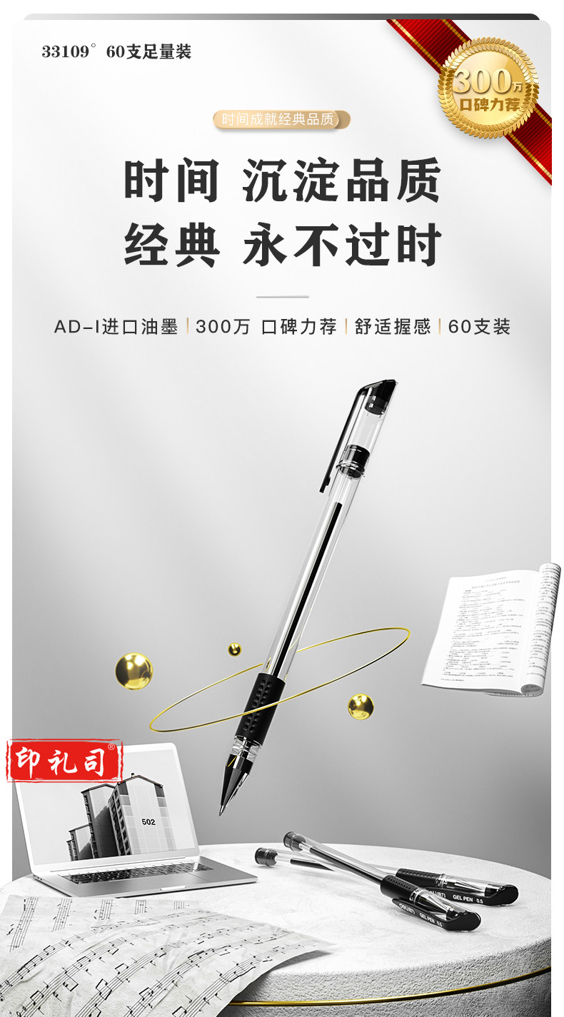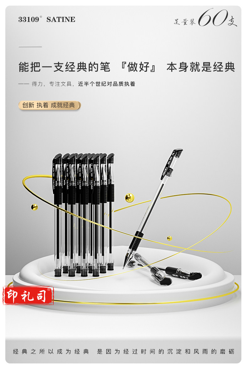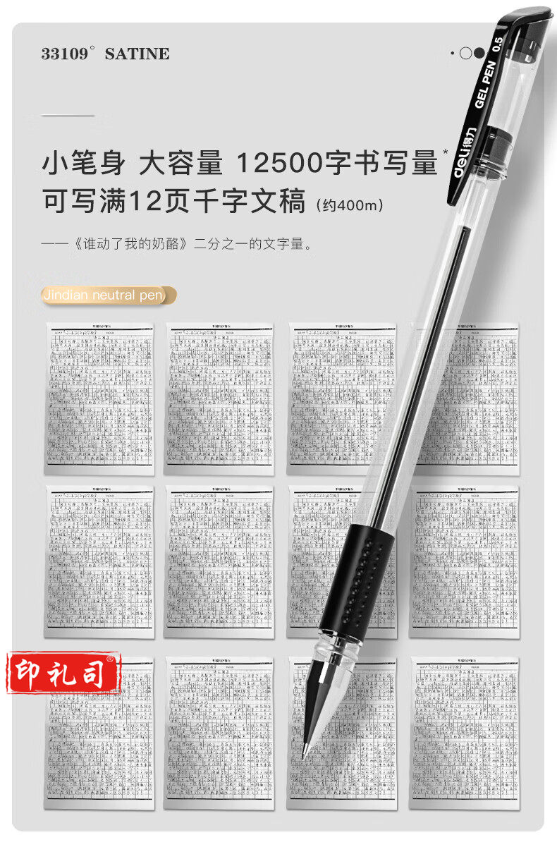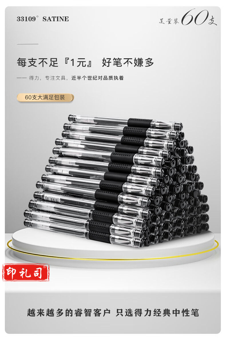 得力(deli)60支0.5mm中性笔签字笔水笔 子弹头黑色33109 办公用品