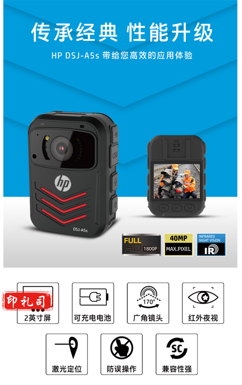 惠普(HP)DSJ-A5S 执法记录仪1800P高清红外夜视4000万像素现场记录仪 16G内存卡*1