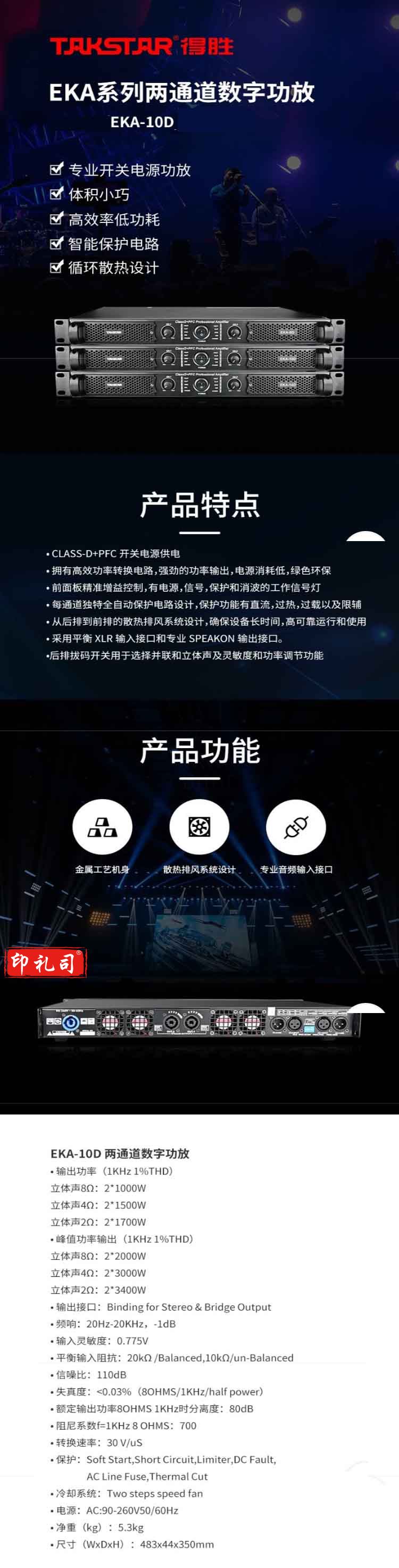 得胜 TAKSTAR EKA-10D 数字功率放大器 专业纯后级功放舞台演出会议工程安装专用 计价单位: 台