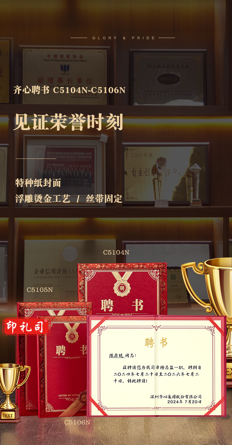 齐心 C5106 荣誉聘书 附证书内芯 12K 10本/盒