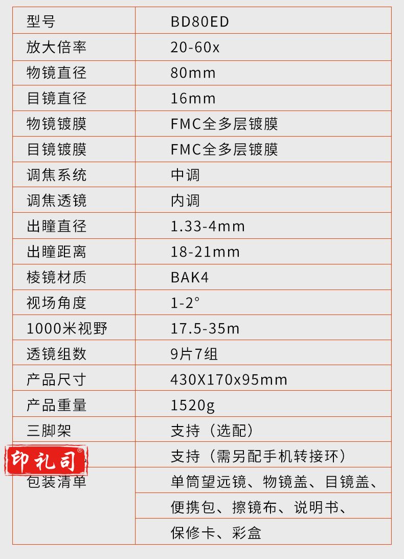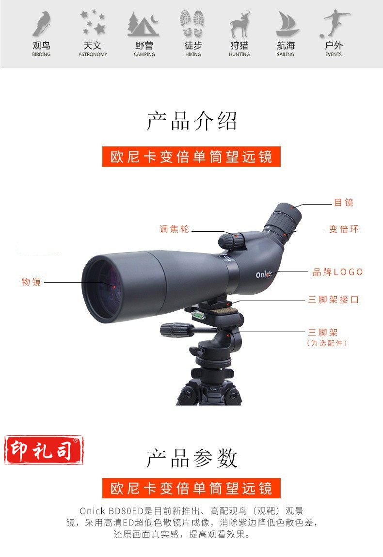 欧尼卡(Onick)BD80ED 大口径高倍高清单筒望远镜