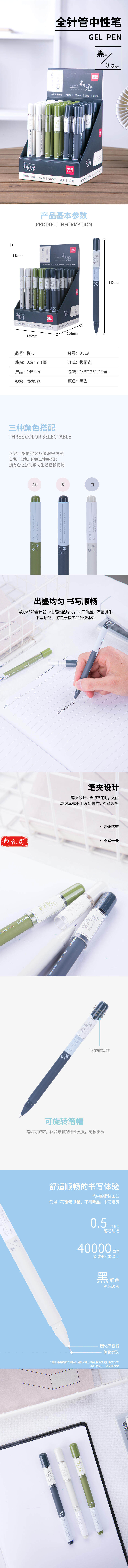 得力A529学生中性笔0.5mm全针管(黑)(36支/展示盒)