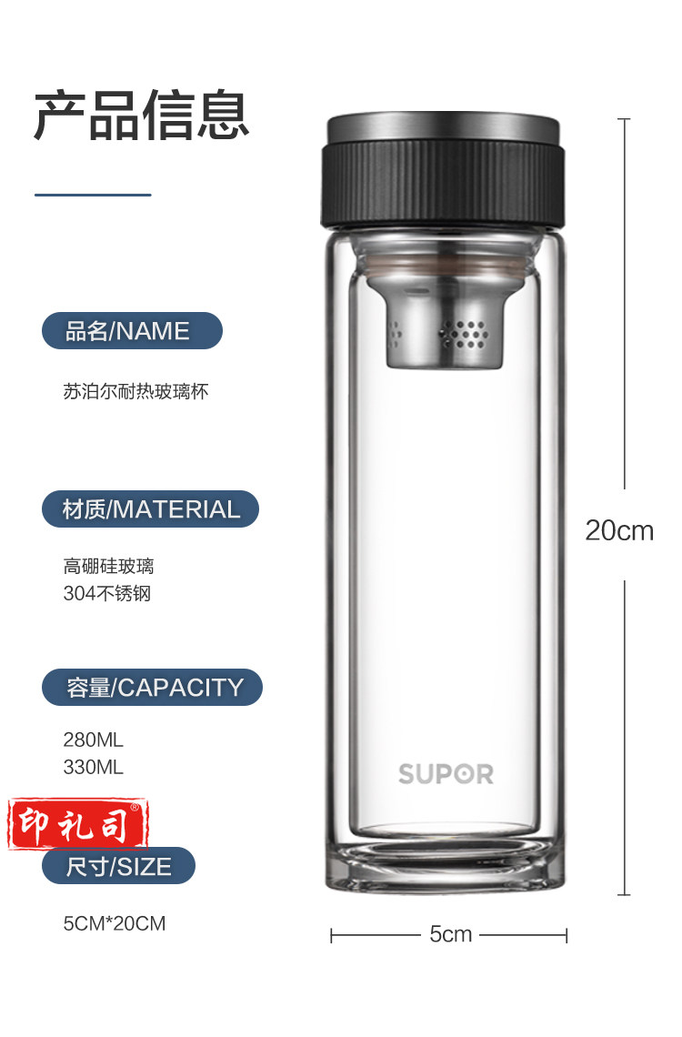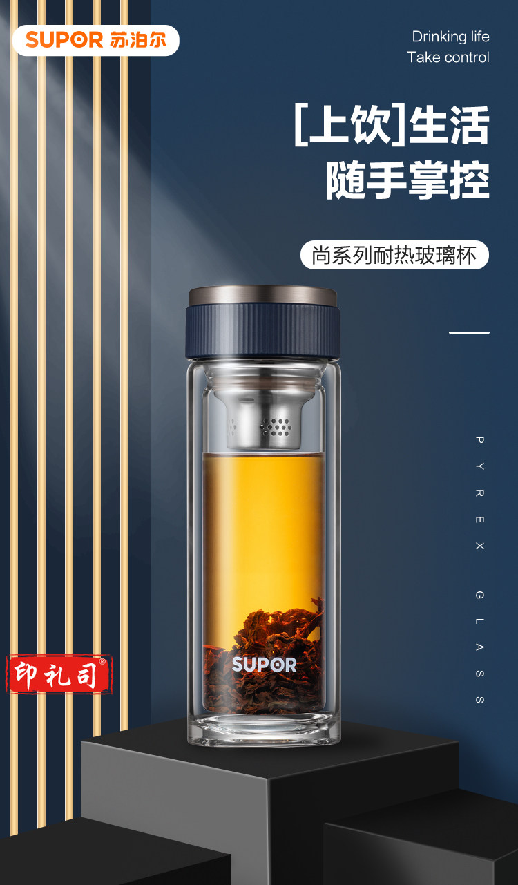 苏泊尔KC33DV10 尚系列耐热玻璃杯 330ml 乌木黑