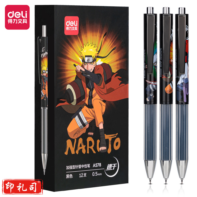 得力A578火影忍者速干学生按动中性笔0.5mmST头(黑)(支)
