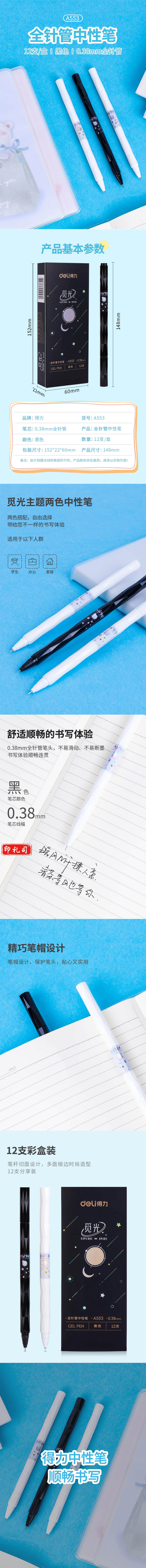 得力A553中性笔0.38mm全针管(黑)(支)