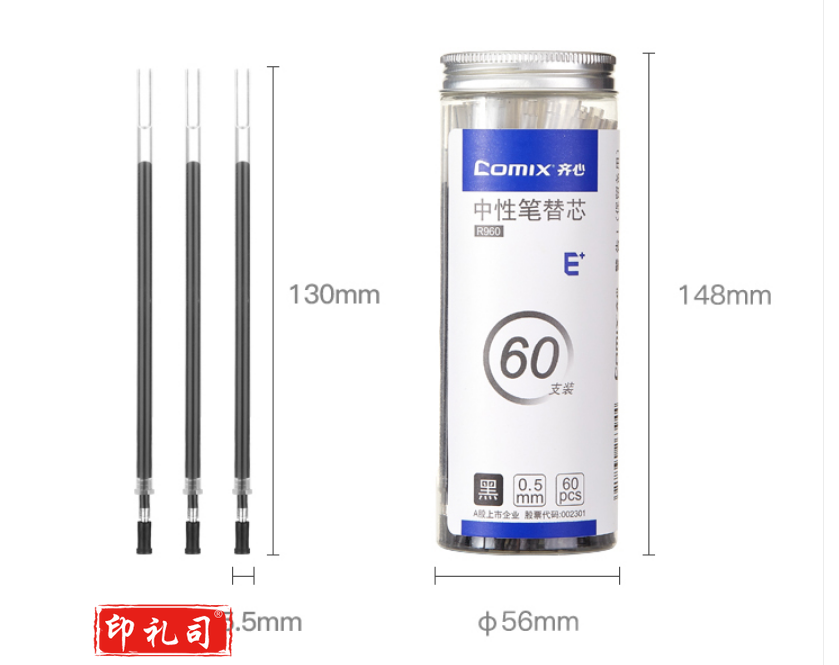 齐心(comix)中性笔笔芯替芯 R960 黑色0.5mm 60支装