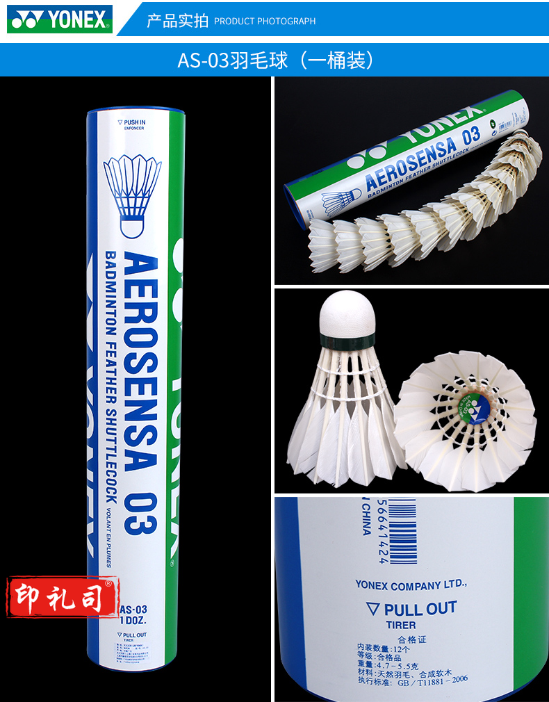 尤尼克斯YONEX羽毛球AS-03耐打鸭毛羽毛球(1桶12只装)