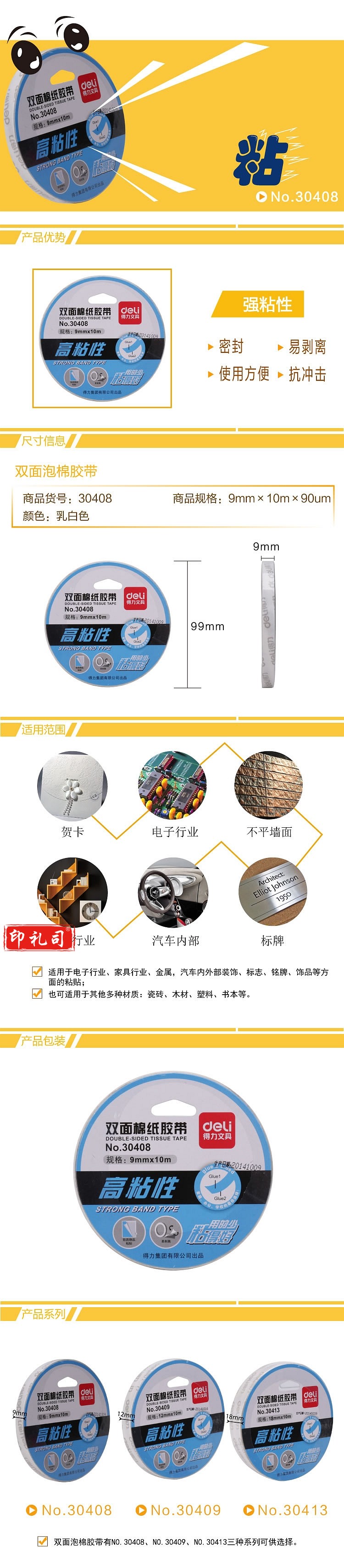 得力 30408 油性双面胶带 9mmx10mx90um (单位:卷) 白色
