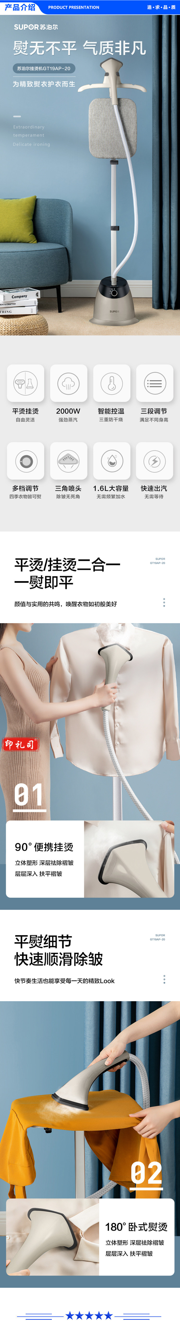 苏泊尔 SUPOR GT19AP-20 挂烫机 安心系列 熨斗 蒸汽挂烫机 智能烫衣服电熨斗带熨烫板