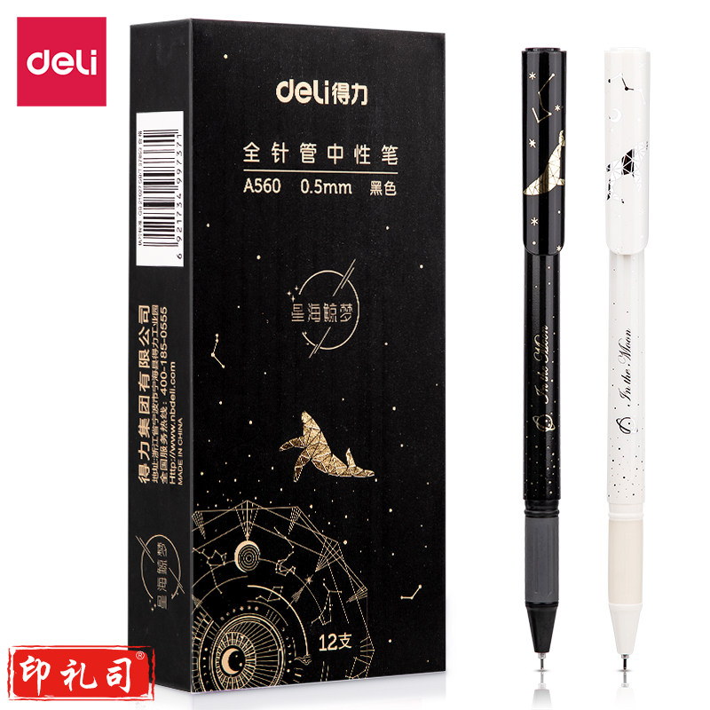 得力A560学生中性笔0.5mm全针管(黑)(支)