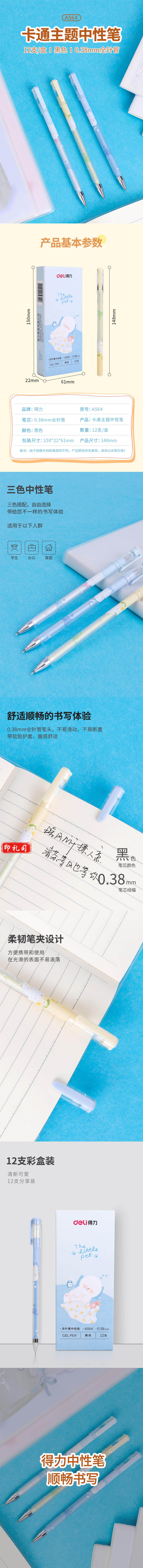 得力A564学生中性笔0.38mm全针管(黑)(支)