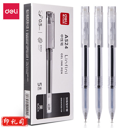 得力A524学生中性笔0.5mm加强型针管(黑)(支)