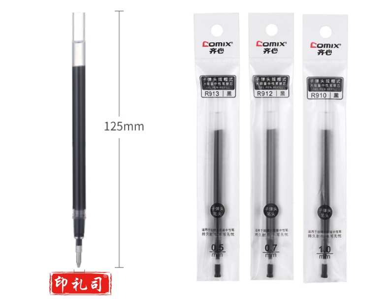 齐心(Comix) 超大容量子弹头笔芯中性笔签字笔水笔替芯0.7mm 黑色 20支/盒