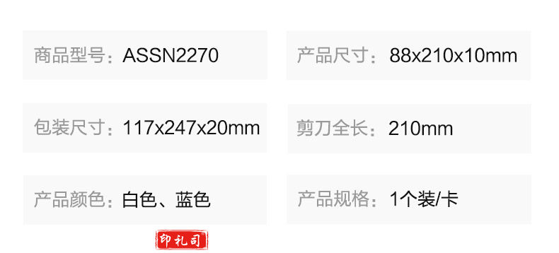 晨光ASSN2270 TOP series 柳叶剪刀210MM 单把装 两色随机