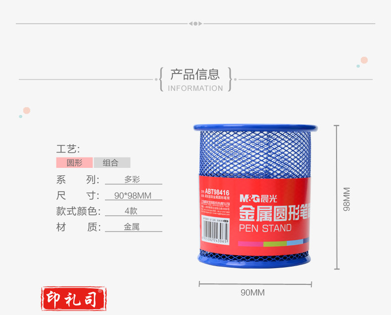 晨光(M&G)多彩金属圆形笔筒ABT98416