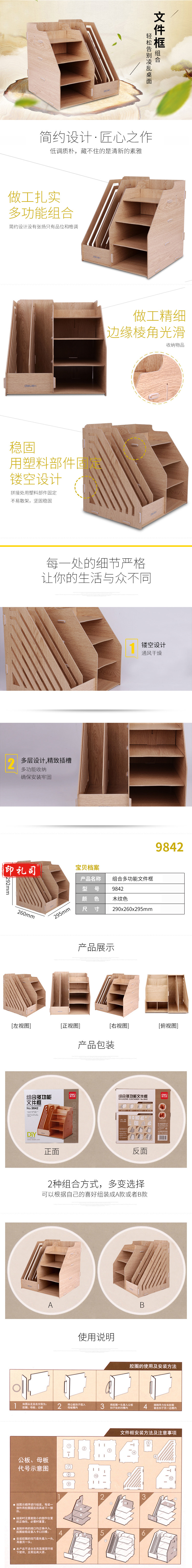 得力9842组合多功能文件框(棕色)(只)