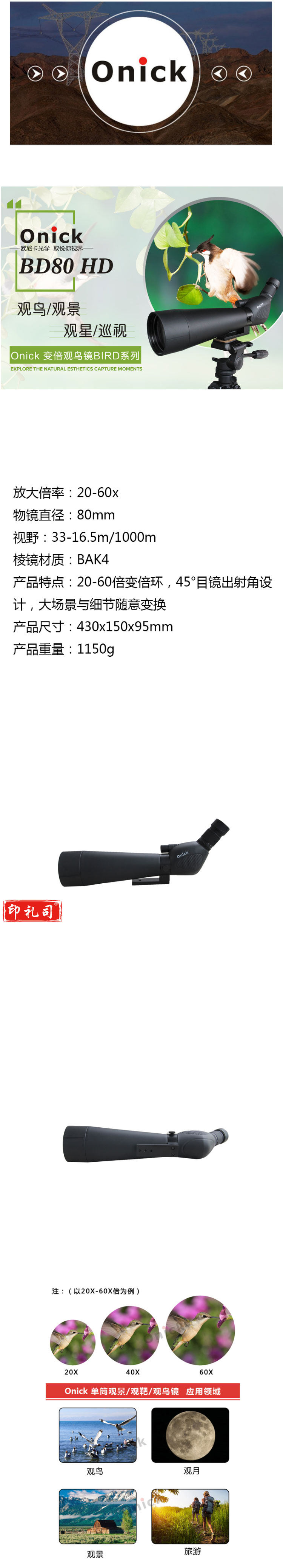 欧尼卡(Onick)BD80HD 大口径高倍高清单筒望远镜