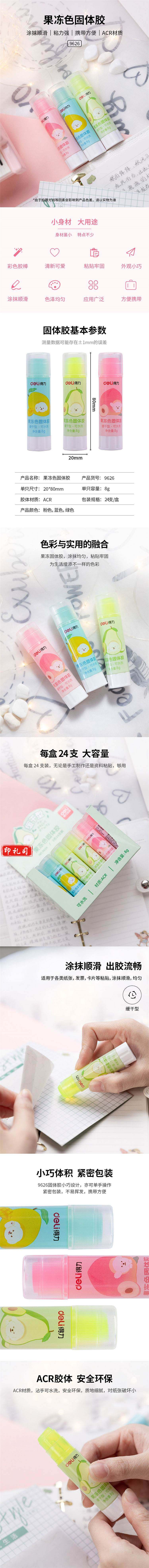 得力9626果冻色固体胶(混)