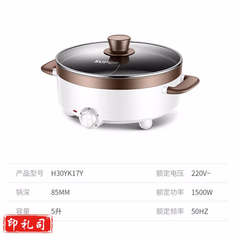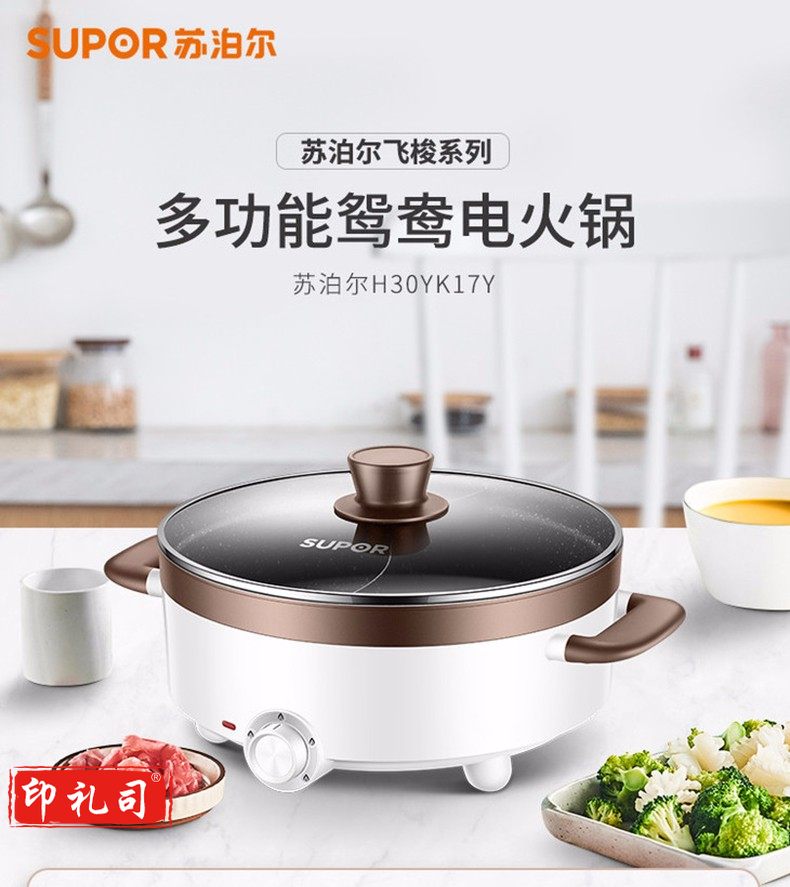 苏泊尔H30YK17Y ZMD安心系列 电火锅 5L 多功能鸳鸯电火锅 炖煮涮串 极简旋钮 4档火力 家用不沾多功能