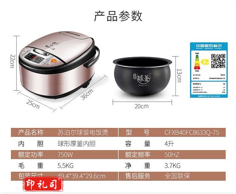 苏泊尔CFXB40FC8633Q-75 球釜4升家用3-4人电饭煲 智能预约 拉丝金属外壳