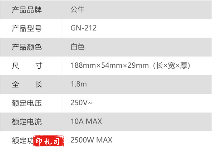 公牛(BULL)GN-212插座 3位总控1.8米(