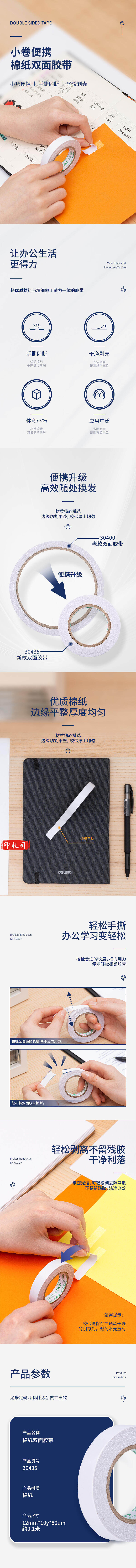 得力30435小卷芯棉纸双面胶带12mm*10y*80um(白色)(1卷/袋)