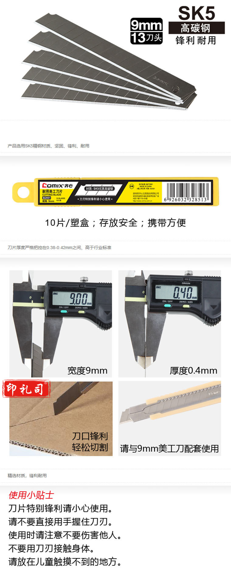 齐心 B2851 美工刀片9mm 10片/盒(计价单位:盒) (5盒/包)