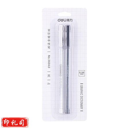 得力36043中性笔0.38mm全针管(黑)(2支/卡)