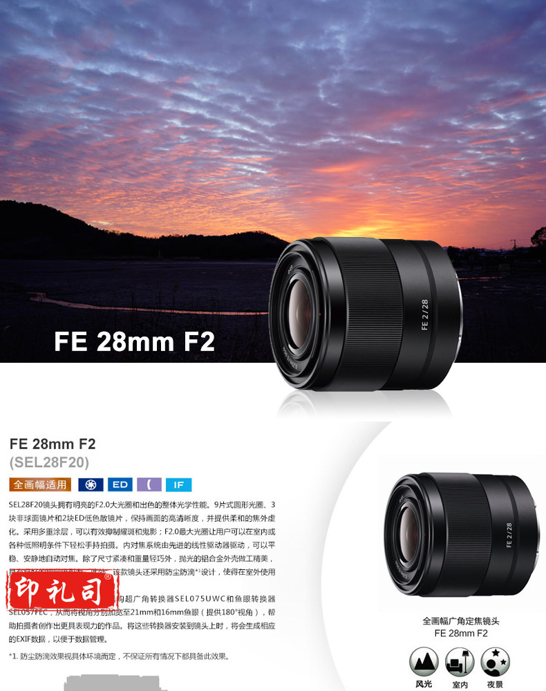 索尼(SONY) FE 28mm F2 全幅广角定焦镜头(SEL28F20)