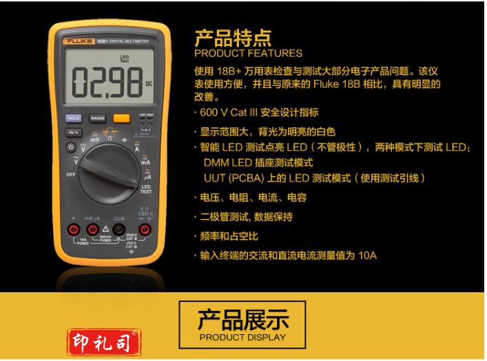 福禄克(FLUKE) F18B+ 数字万用表 掌上型多用表 自动量程 仪器仪表