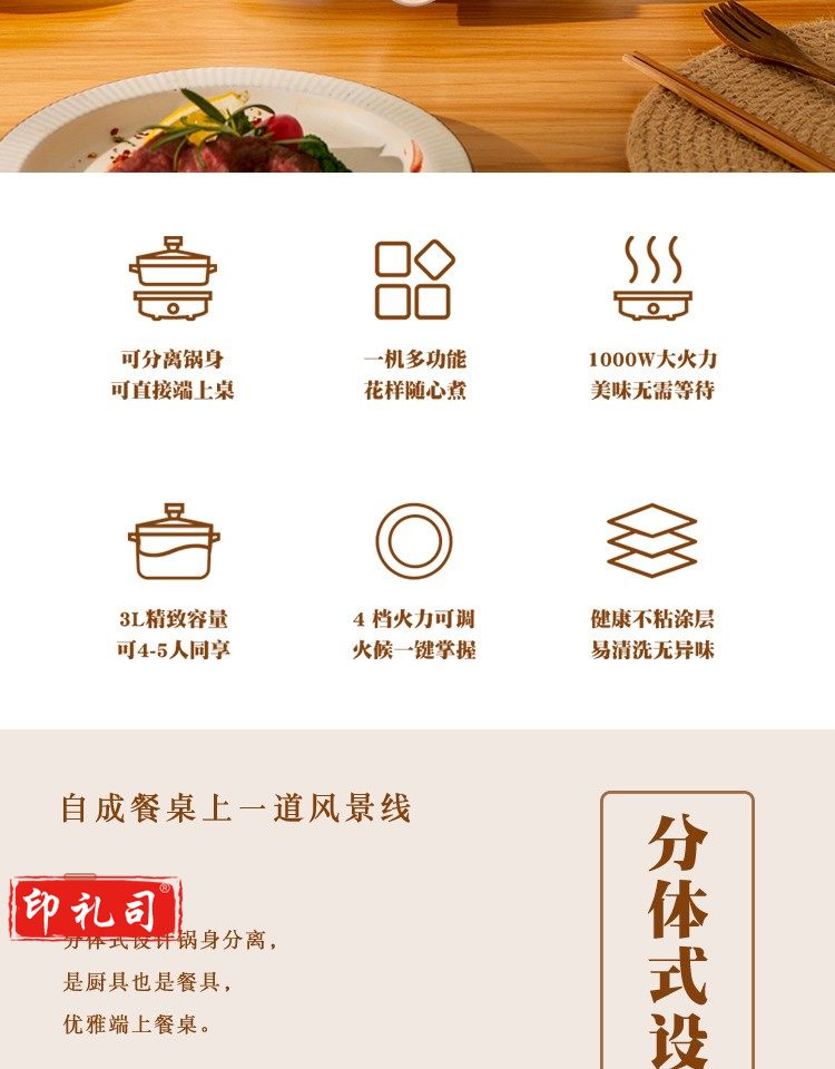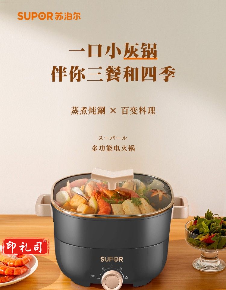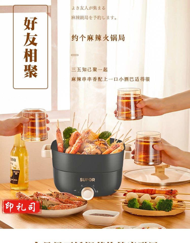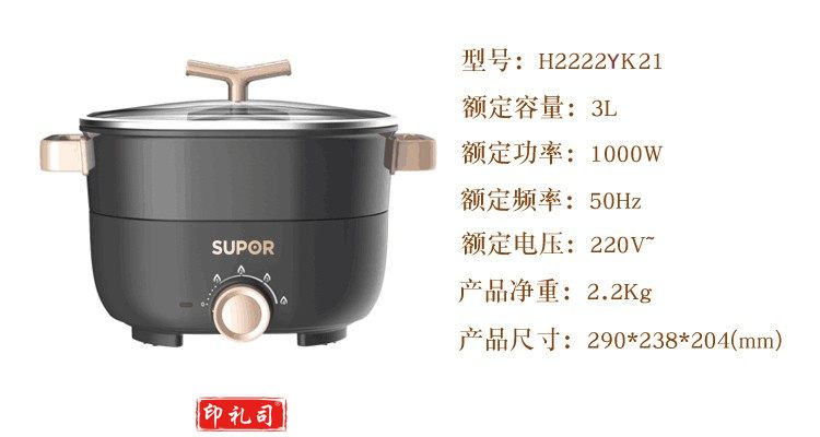 苏泊尔H2222YK21 ZMD安心系列 3L 蒸煮炖涮 四挡火候 1000W聚能加热多功能电火锅
