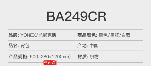 YONEX尤尼克斯羽毛球包双肩背包多功能时尚运动潮款BA249CR黑色