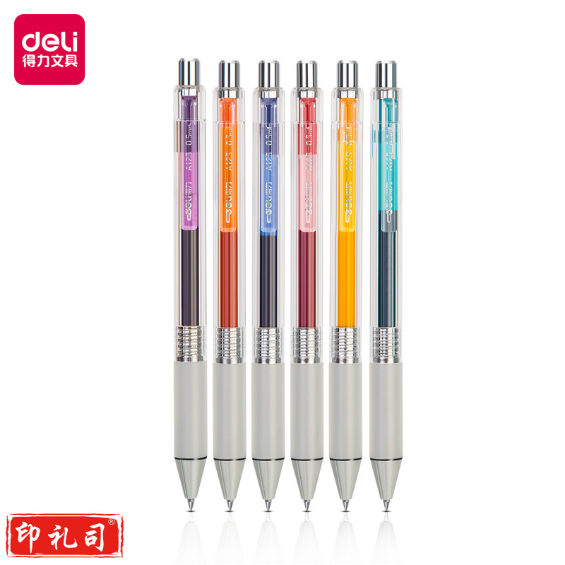 得力A123按动彩色中性笔0.5mm子弹头(混)(盒)