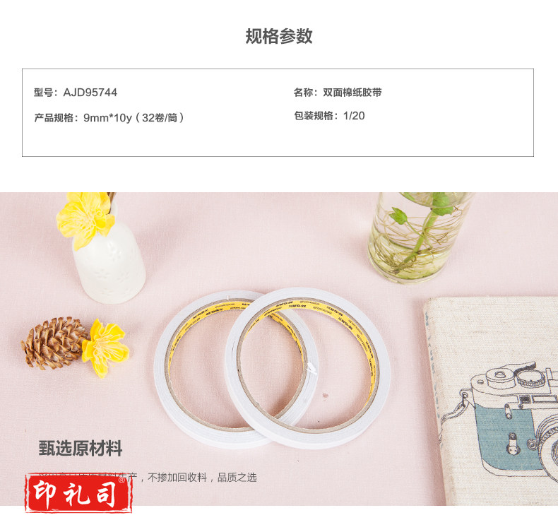 晨光AJD95744双面棉纸胶带9mm*10y(32卷/筒)