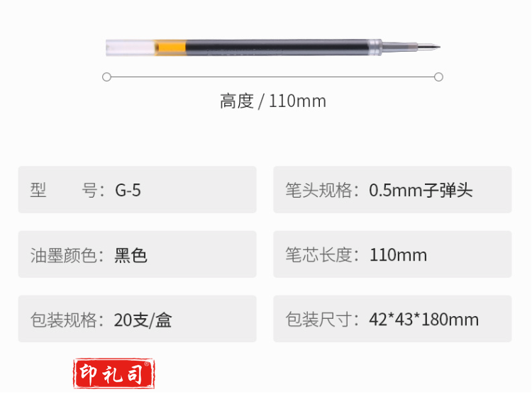 晨光(M&G)中性笔芯按动子弹头0.5mm 适用K35 G-5系列替芯签字笔替芯 AGR67T02 黑色 20支/盒