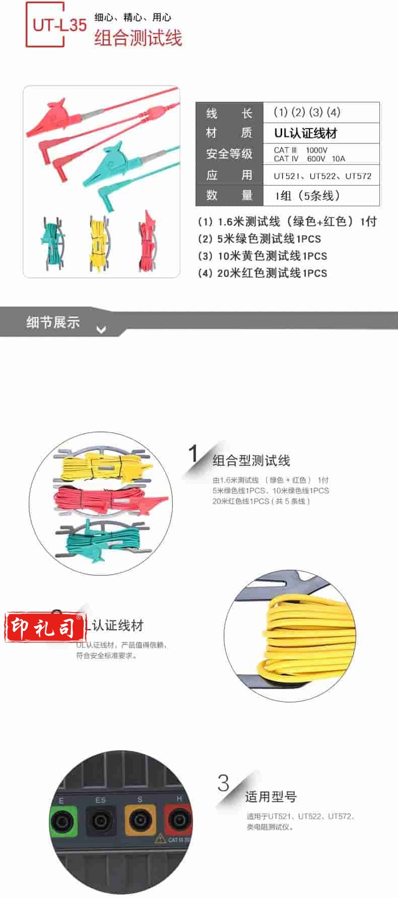 优利德UT521 UT522鳄鱼夹绝缘 组合测试线UTL355条线