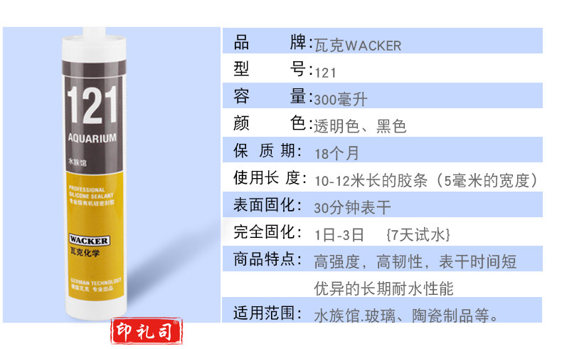 瓦克( WAKE ) 121大型鱼缸水族玻璃胶 水族箱专用密封胶鱼缸胶透明300ml
