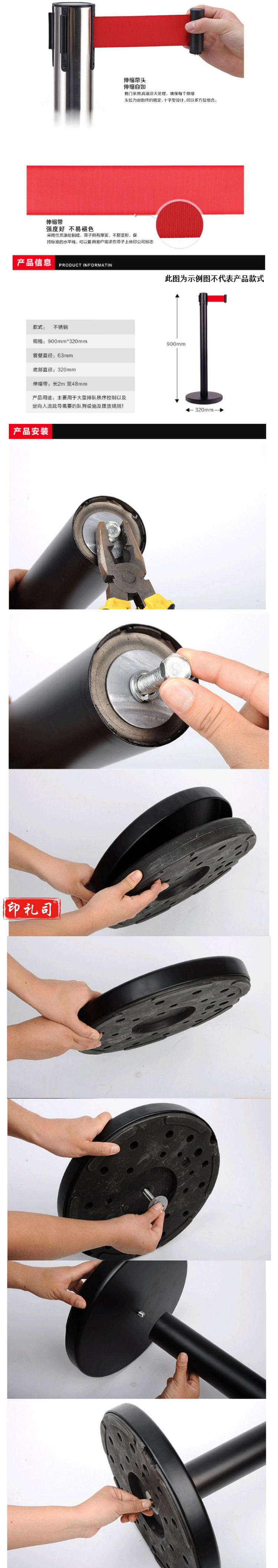 8249 一米线围栏栏杆座伸缩栏杆不锈钢款