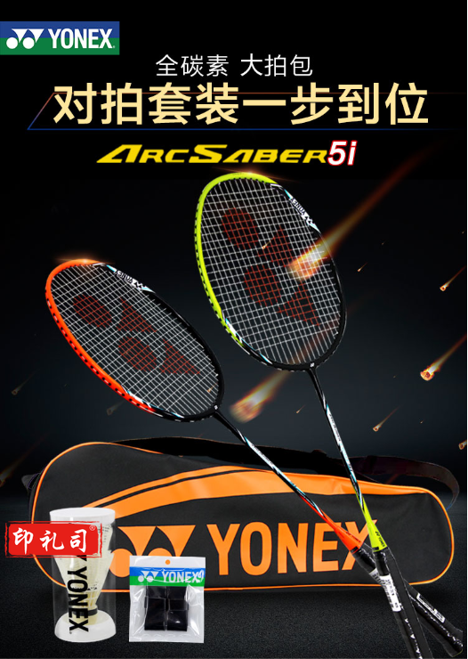 尤尼克斯(YONEX)羽毛球拍男女情侣双拍全碳素超轻耐用型yy套装(含大包+球+手胶) ARC5I-2CR粉红蓝 对拍已穿线23磅