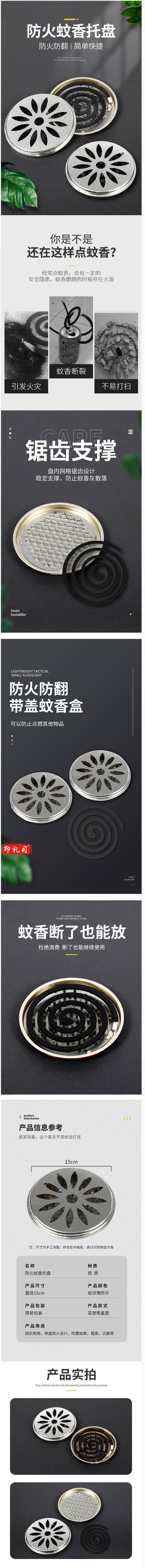 不锈钢蚊香盘 带盖蚊香盒 防火蚊香托盘 直径约15cm 5个/组