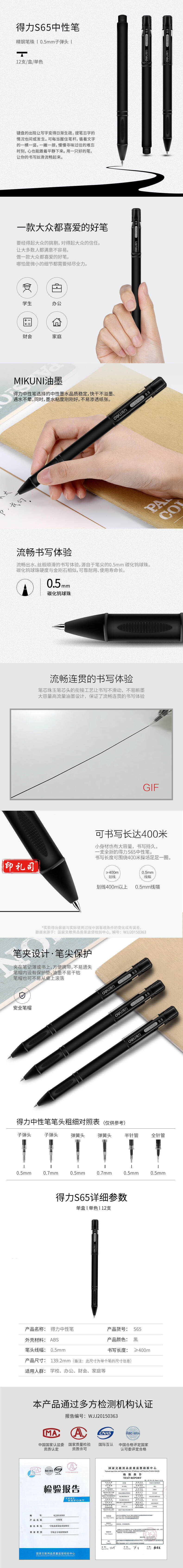 得力S65中性笔0.5mm子弹头(黑)(支)