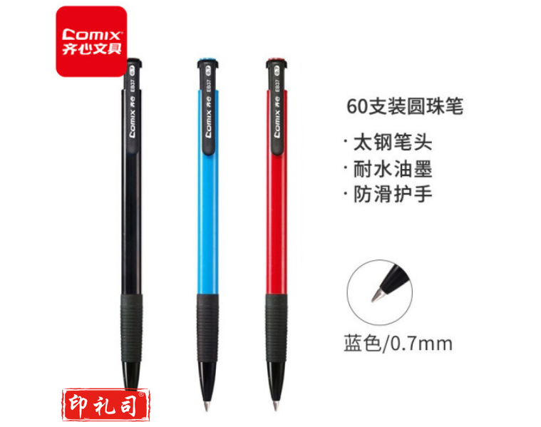 齐心(Comix) 按动圆珠笔EB12 0.7mm 蓝色60支装
