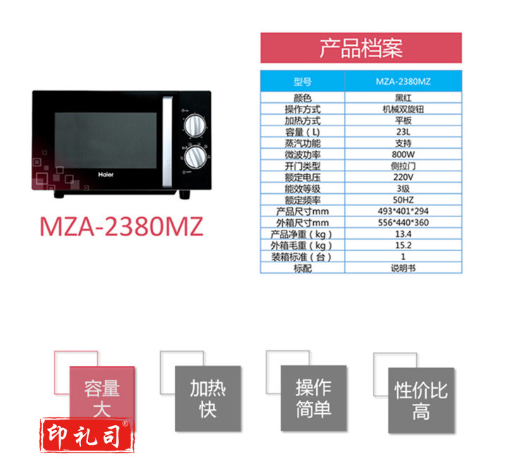 海尔(Haier)MZA-2380MZ 微波炉 23L双旋钮5档火力转波加热